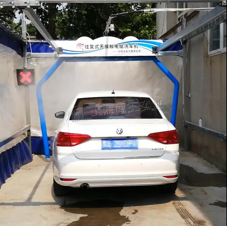 闖王流控?zé)o接觸電腦洗車機(jī)的洗車原理是將車停在洗車工位上、拉緊手剎,設(shè)備在上行軌道上往復(fù)運(yùn)行完成整個(gè)洗車過程。